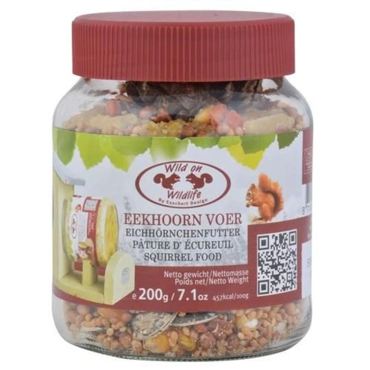 “Wild on Wildlife” eekhoorn pindakaas is een uitgebalanceerde voedermix voor wilde eekhoorns als aanvulling op hun eigen voedsel. De eekhoorns eten ter plekke deze lekkernij op of bouwen er elders een voorraadje voor de winterdag mee op. Bovendien laat de eekhoorn zich makkelijker bekijken als hij zit te eten. Dat is vooral ’s ochtends vroeg en in de namiddag tot zonsondergang. In de herfst eet de eekhoorn extra veel om een vetlaag voor de winter op te bouwen.