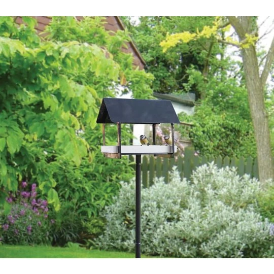 In een moderne en strakke tuin mogen vogelvoederartikelen niet ontbreken. Deze tijdloze voedertafel met strakke uitstraling biedt vogels een fijne voederplaats. Door de open structuur kunnen de vogels van alle kanten aanvliegen, en zo plaatsnemen op het voederplateau. Het dak zorgt ervoor dat het voer droog blijft. Dankzij de paal kan deze voedertafel zeer gemakkelijk in de grond worden gestoken.