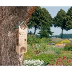 Een tuin maak je extra vriendelijk voor insecten met een mooie insectenhuis! Het insectenhuis bij voorkeur op een warme plaats ophangen en in de buurt van bloeiende planten. Met een insectenhuis verhoog je de biodiversiteit in de tuin! Met de Insectenhuis Sol bied je insecten een mooi onderkomen!