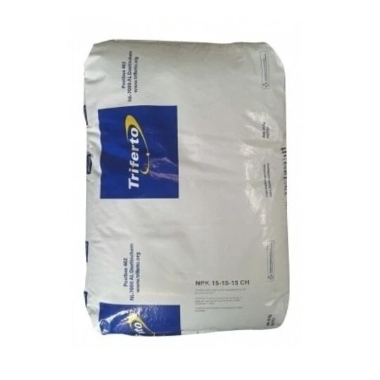 NPK 15-15-15 kan toegepast worden bij alle gewassen zoals gazon, bloemen of in de moestuin. 15-15-15 is een chloorhoudende kunstmest.